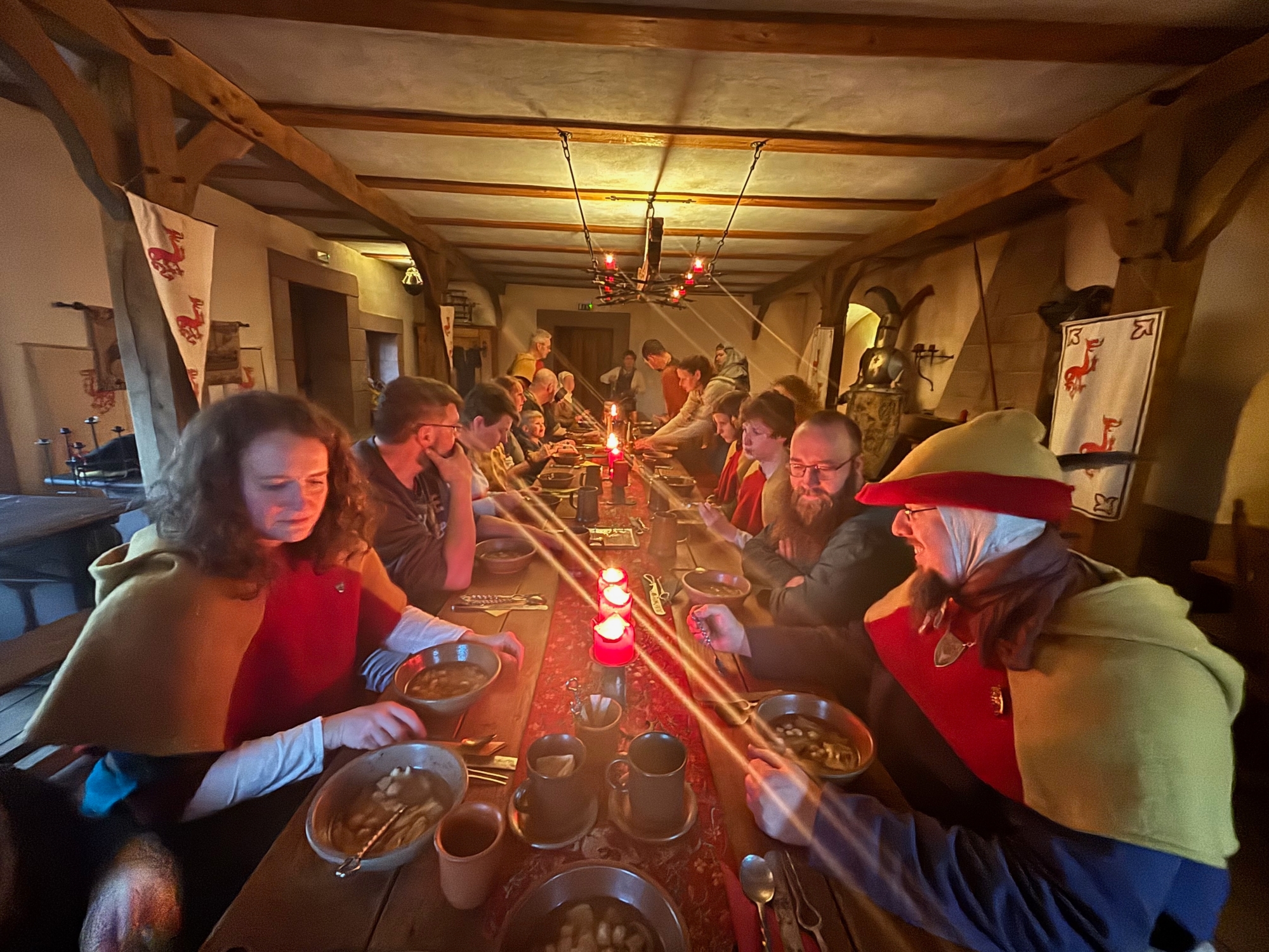 Das Essen war ein wahrer Genuss – von deftigen Braten über würzige Suppe bis hin zu leckeren Rippchen, die uns direkt ins Mittelalter versetzten. Die Stimmung war ausgelassen und voller Lebensfreude, ganz so, als wären wir selbst Teil einer mittelalterlichen Tafelrunde.